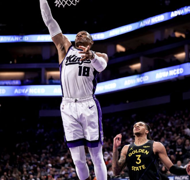国王队自然是要抓住这样的机会,威斯布鲁克打得非常积极主动。随着队内伤病的增多,威斯布鲁克已经进入了国王队的首发阵容,甚至要顶上前锋的位置,但这都难不倒他,他有能力为球队做贡献。